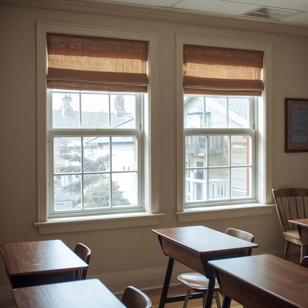 Layer sheer curtains behind burlap panels for adjustable light control. This combo lets you darken the room for videos without creating a cave atmosphere. The natural fibers also help with sound absorption—a blessing when your neighbor’s class is having indoor recess.
