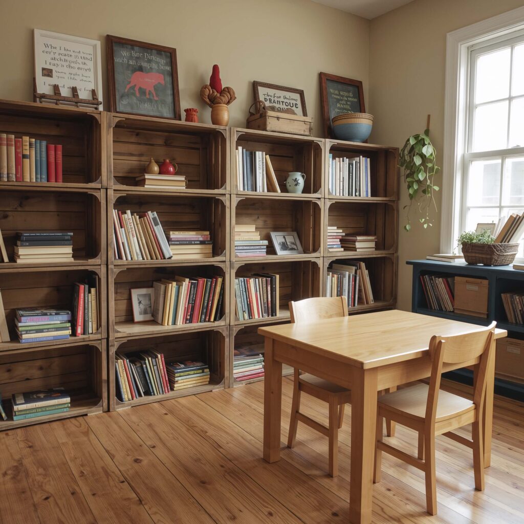 My crate system started with three apple crates from a local orchard (free if you ask nicely in the off-season). Now I have an entire reading corner that looks like it belongs in a trendy bookstore. Students actually argue over who gets to be the librarian because organizing these shelves is genuinely fun.
