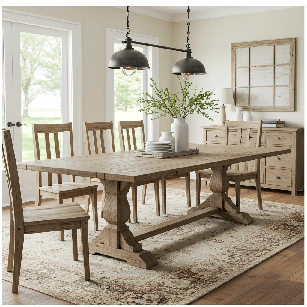 The thing about luxury farmhouse tables? They still welcome spilled milk and homework sessions. They just do it while looking absolutely magnificent.