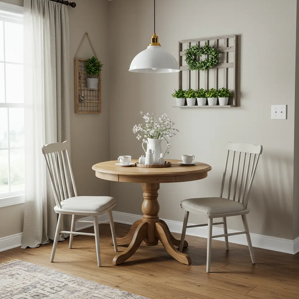 FYI, a small farmhouse table actually makes tiny dining areas feel intentional rather than cramped. It’s all about owning your space limitations with style.