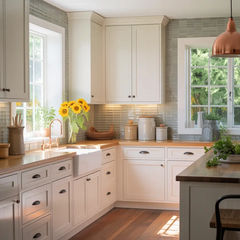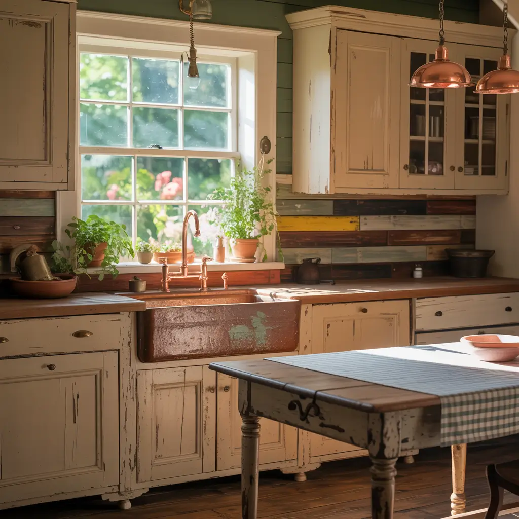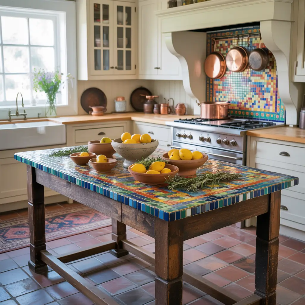 Want to add artistic flair to your farmhouse kitchen? Mosaic tiles let you create custom patterns that reflect your personality. Mix different materials like stone, ceramic, and glass for a truly unique look.