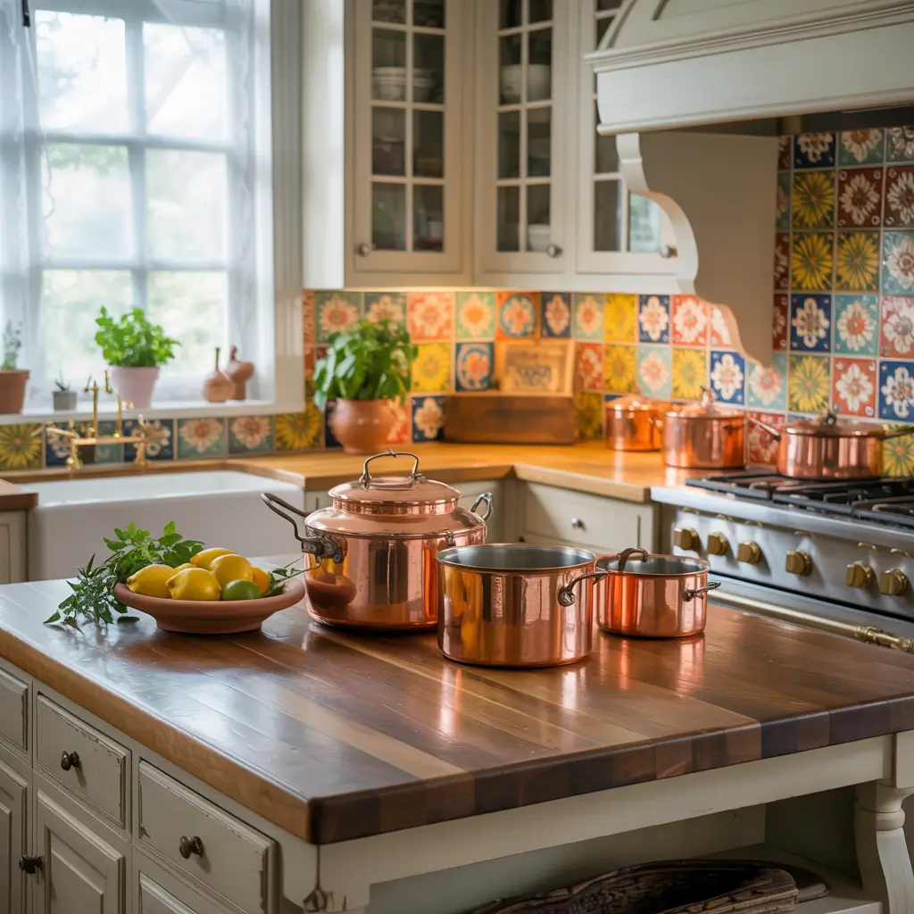 Feeling brave? Hand-painted tiles inject serious personality into farmhouse kitchens. Portuguese azulejos, Mexican Talavera, or Moroccan zellige tiles transform your backsplash into functional art.