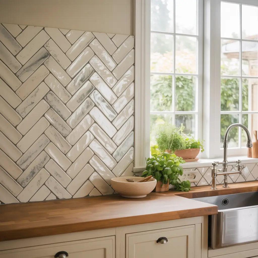 Herringbone Tile Backsplash for Farmhouse Kitchens