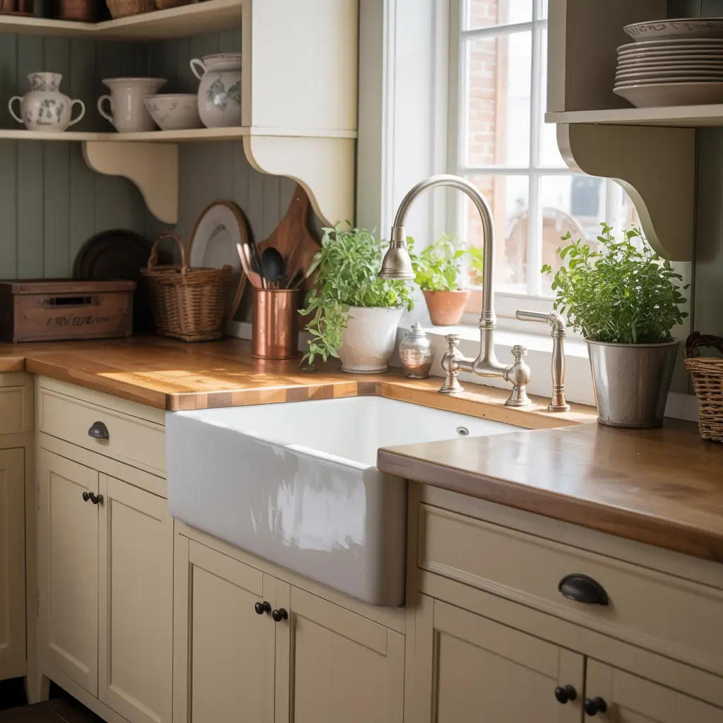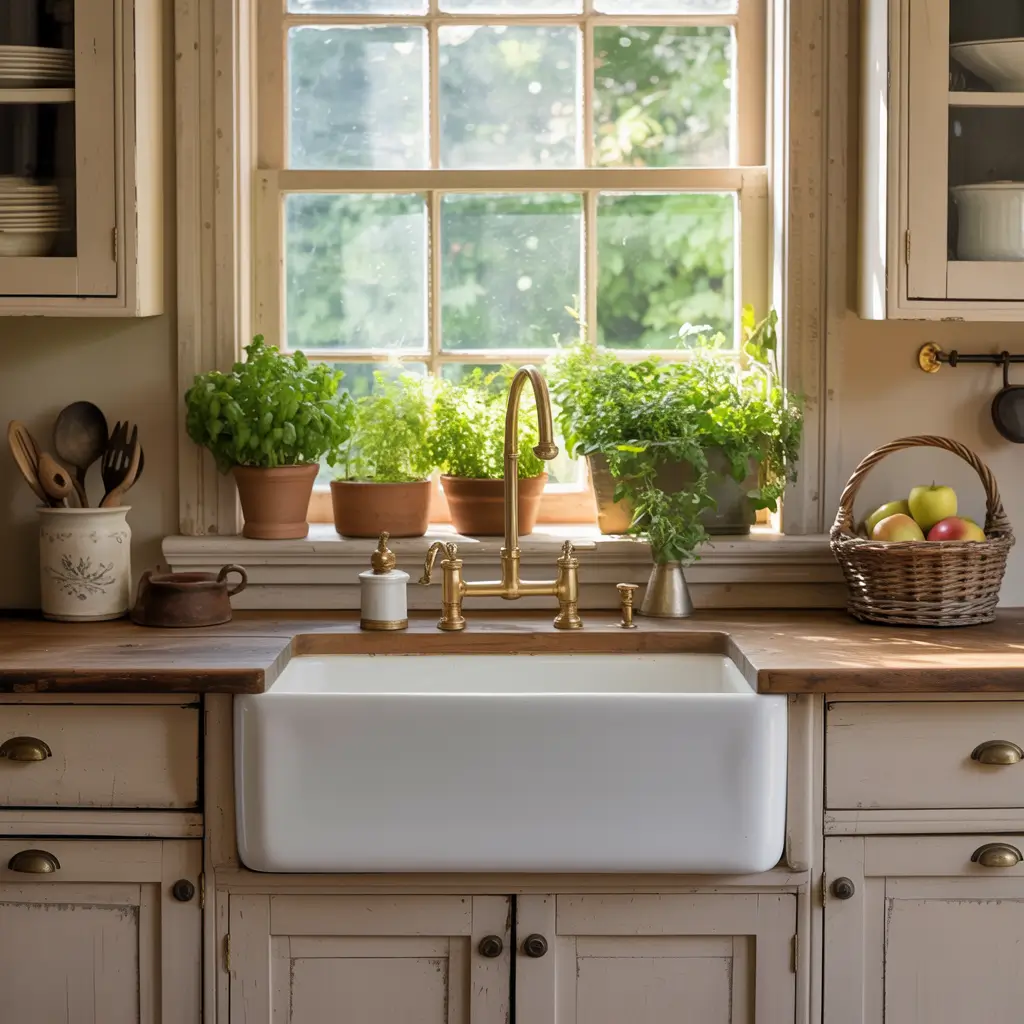 Cozy Farmhouse Kitchen with Apron Sink