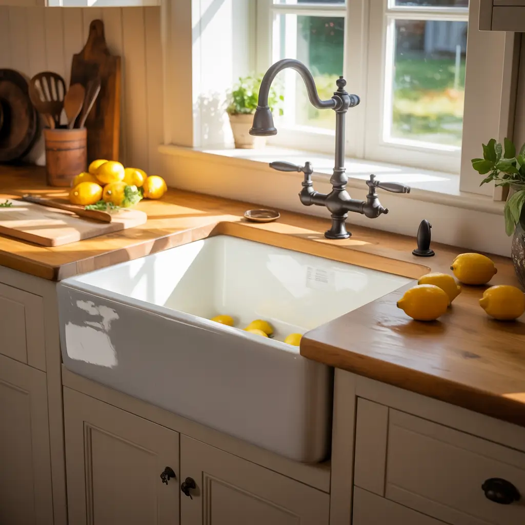 Whether you go for a modern minimalist look or embrace full-on rustic charm, that farmhouse sink will become the hardworking heart of your kitchen. It’s where you’ll wash vegetables from your garden, where kids will give the dog a bath (even though they’re not supposed to), and where countless memories will literally go down the drain – in the best possible way.