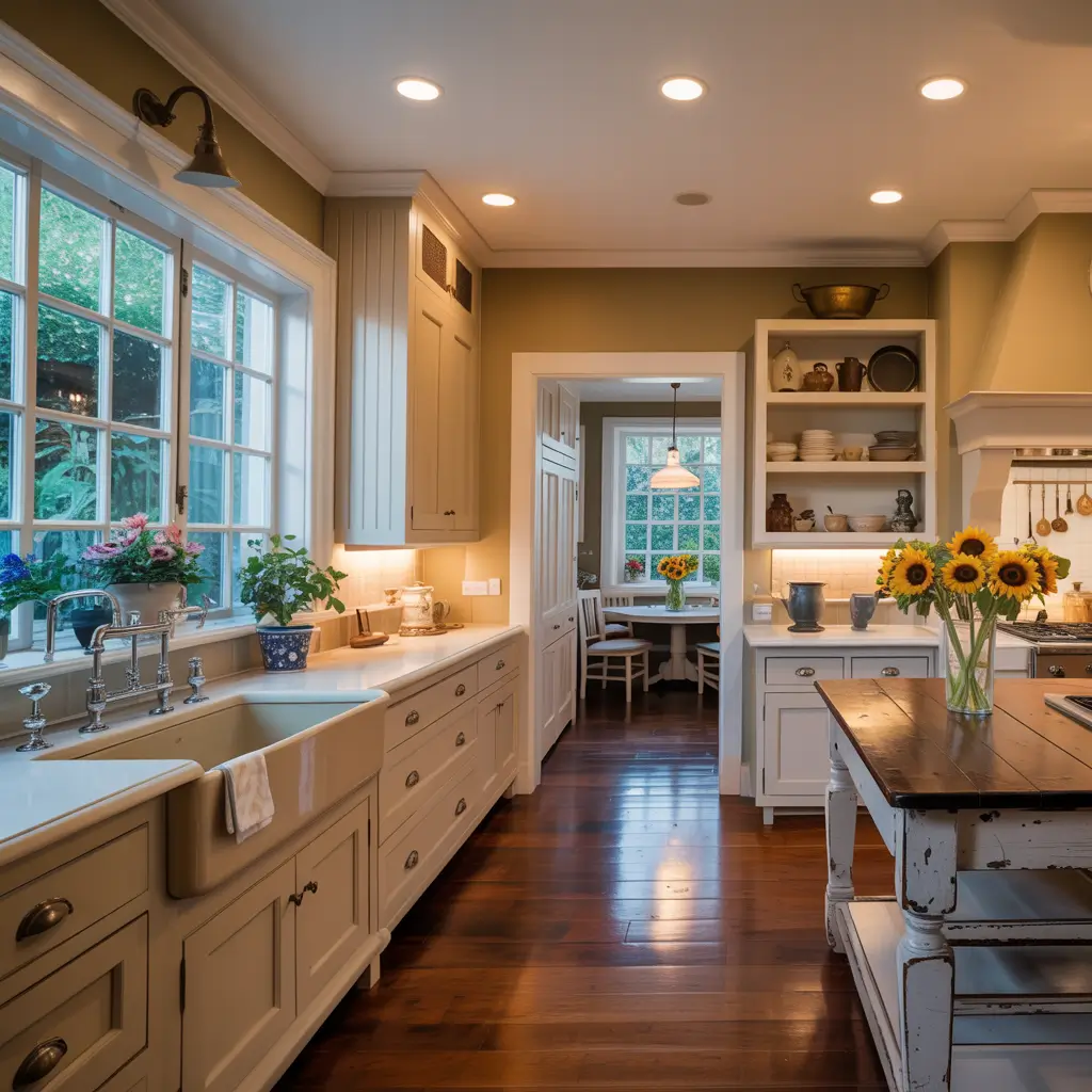 Creating a cozy farmhouse kitchen goes beyond just installing an apron sink – it’s about building layers of warmth and comfort. Think soft textiles, warm lighting, and personal touches that make the space feel lived-in and loved.