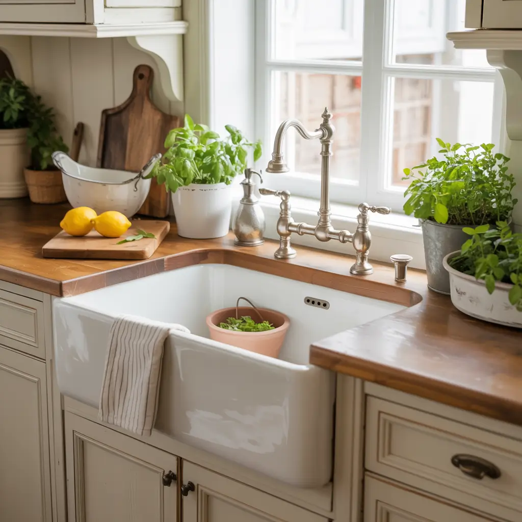 Who says you need a massive kitchen to rock a farmhouse sink? Some of the most charming kitchens I’ve seen squeeze these beauties into the tiniest spaces. The trick is choosing the right size and making every inch count.