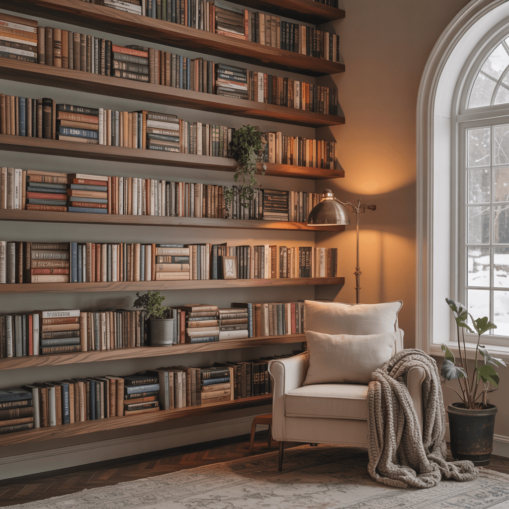 I transformed my spare bedroom into a library using floating shelves, and it’s become everyone’s favorite room in the house. The key was treating it like a real library—organizing books by genre, adding small labels, and even creating a “new acquisitions” shelf. Yes, I’m that person, and no, I’m not sorry.