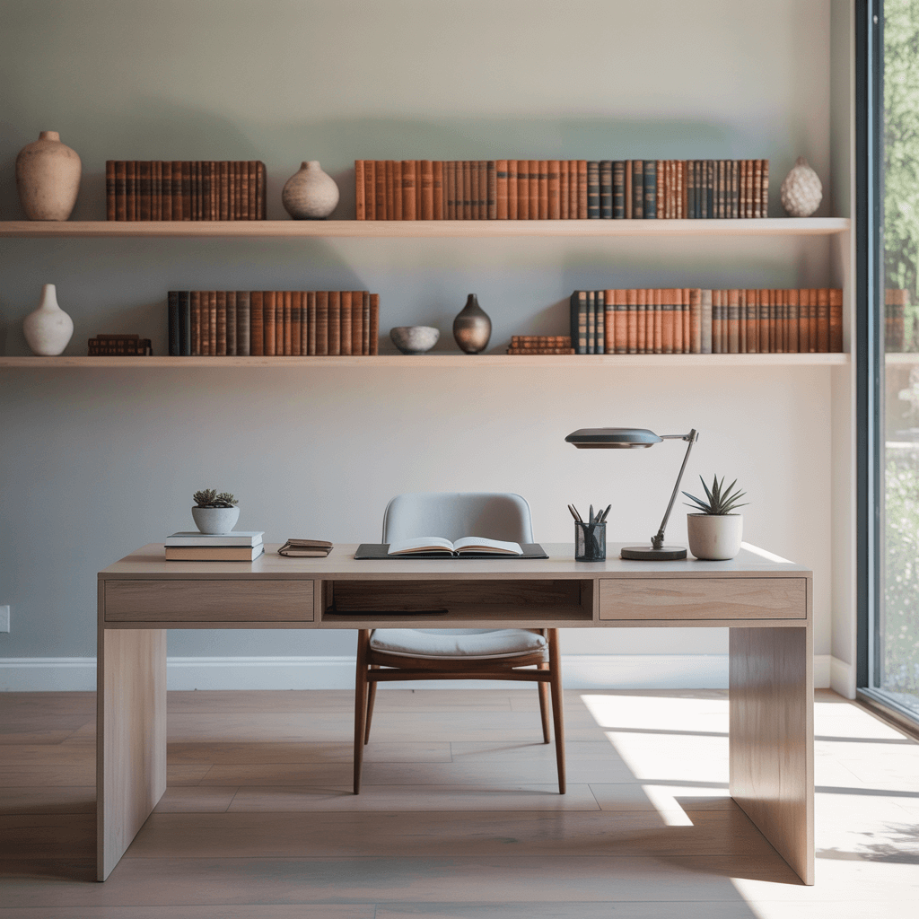 Consider the height carefully. Shelves should be high enough that you don’t bump your head when standing but low enough to reach books while seated. The sweet spot is usually between 12-24 inches above desk height.