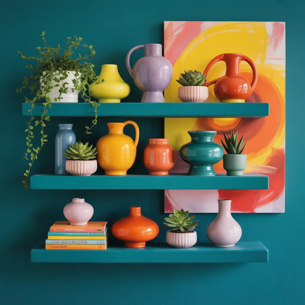 Paint the wall behind the shelf a bold color. This creates instant drama. My turquoise wall makes even simple white objects pop and look intentional.