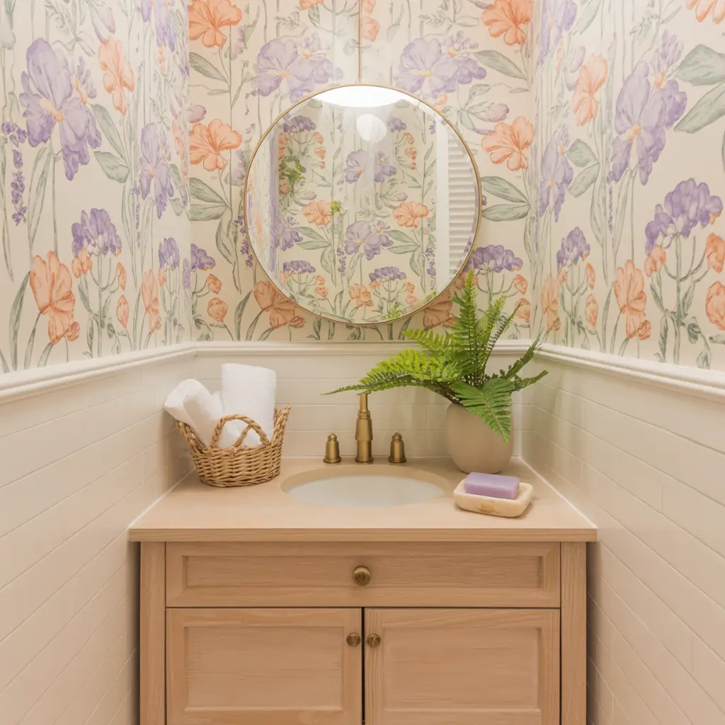 Soft Pastel Floral Wallpaper for Small Bathrooms