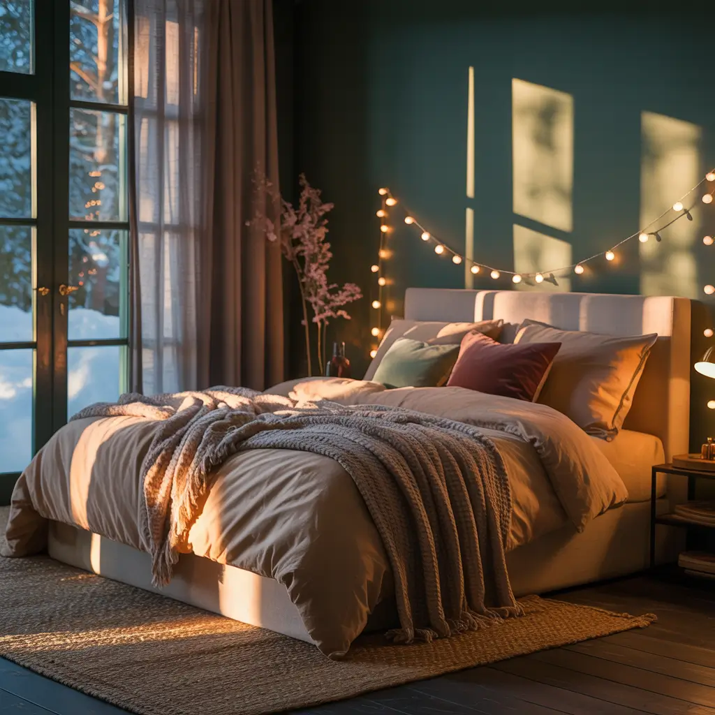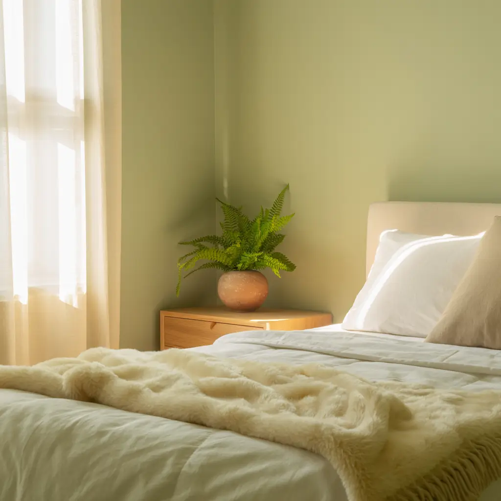 Forest Green Bedroom with Cozy Lighting