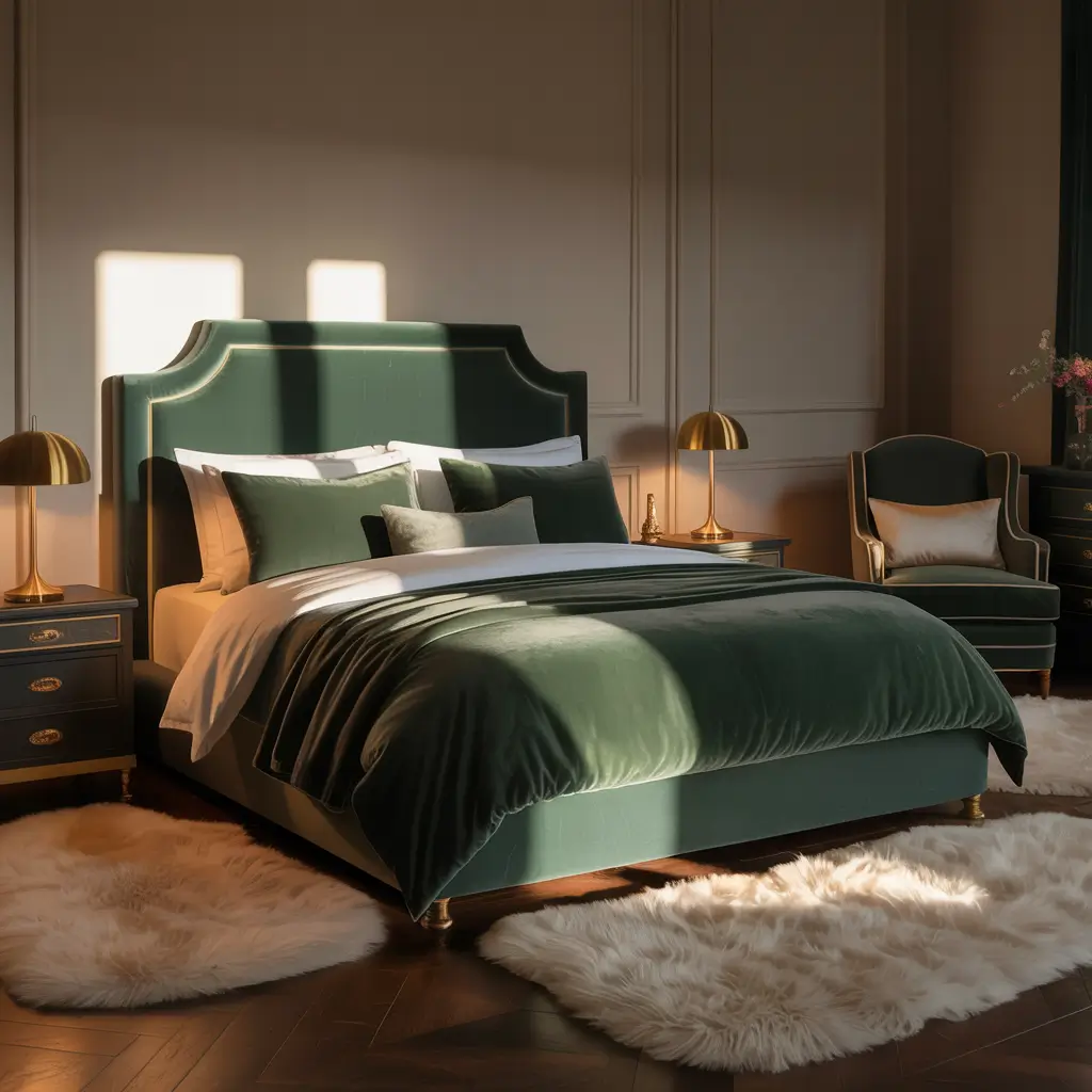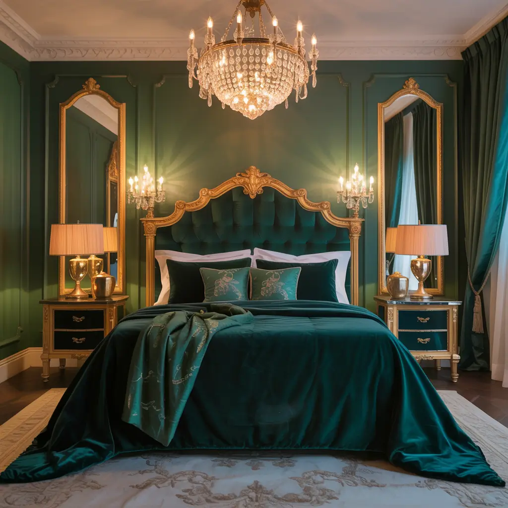 Forest Green Velvet Luxury Bedroom