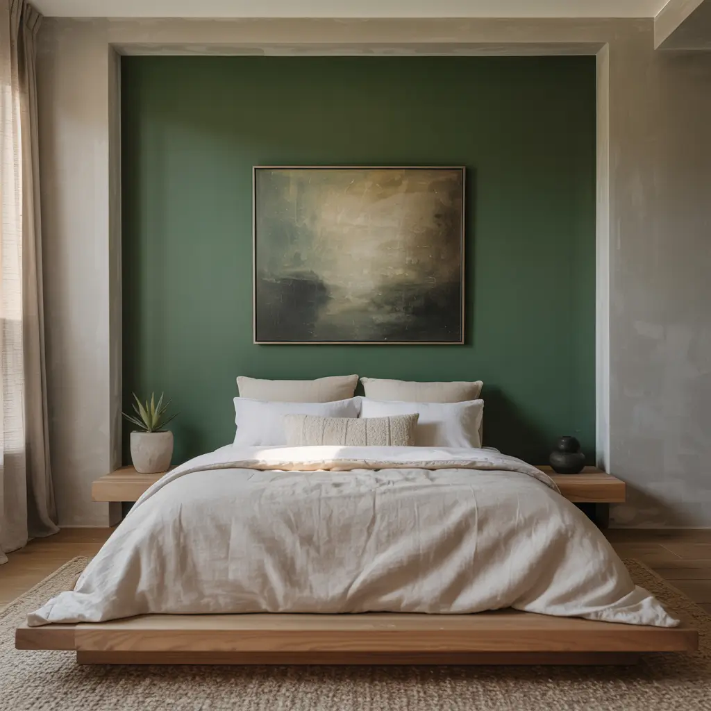 Cozy Forest Green Minimalist Bedroom