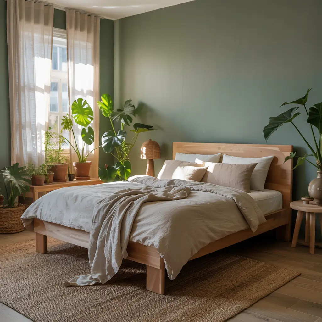 Forest Green and Natural Wood Bedroom