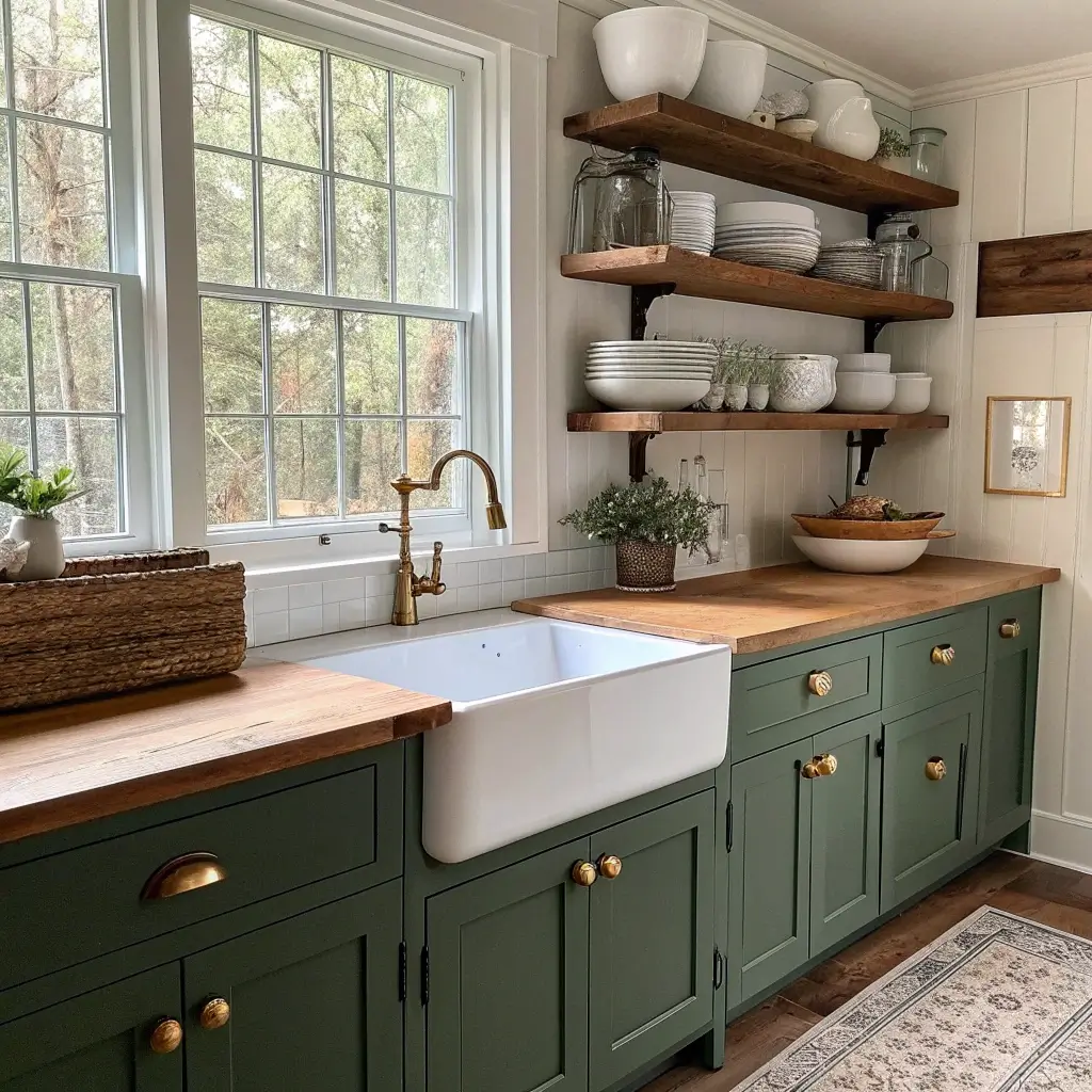 Forest green and farmhouse style create an unexpectedly perfect marriage. This combination brings sophistication to rustic design while maintaining that comfortable, lived-in feeling that makes farmhouse kitchens so appealing.