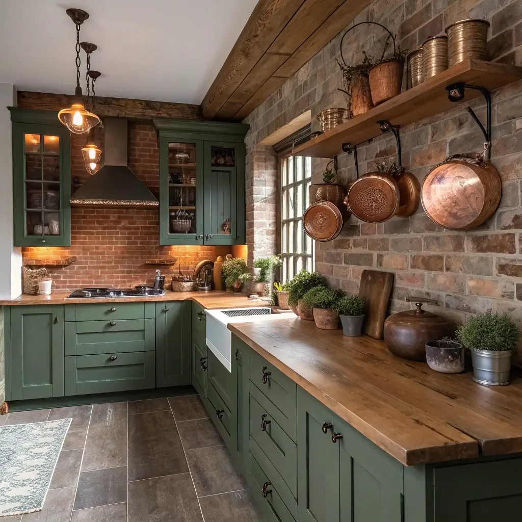 Forget the all-white farmhouse kitchens that dominated Pinterest for years. Forest green brings depth and elegance to farmhouse style without losing the cozy factor. Picture shaker-style doors in deep green, an apron sink, and maybe some exposed beams—instant sophistication.