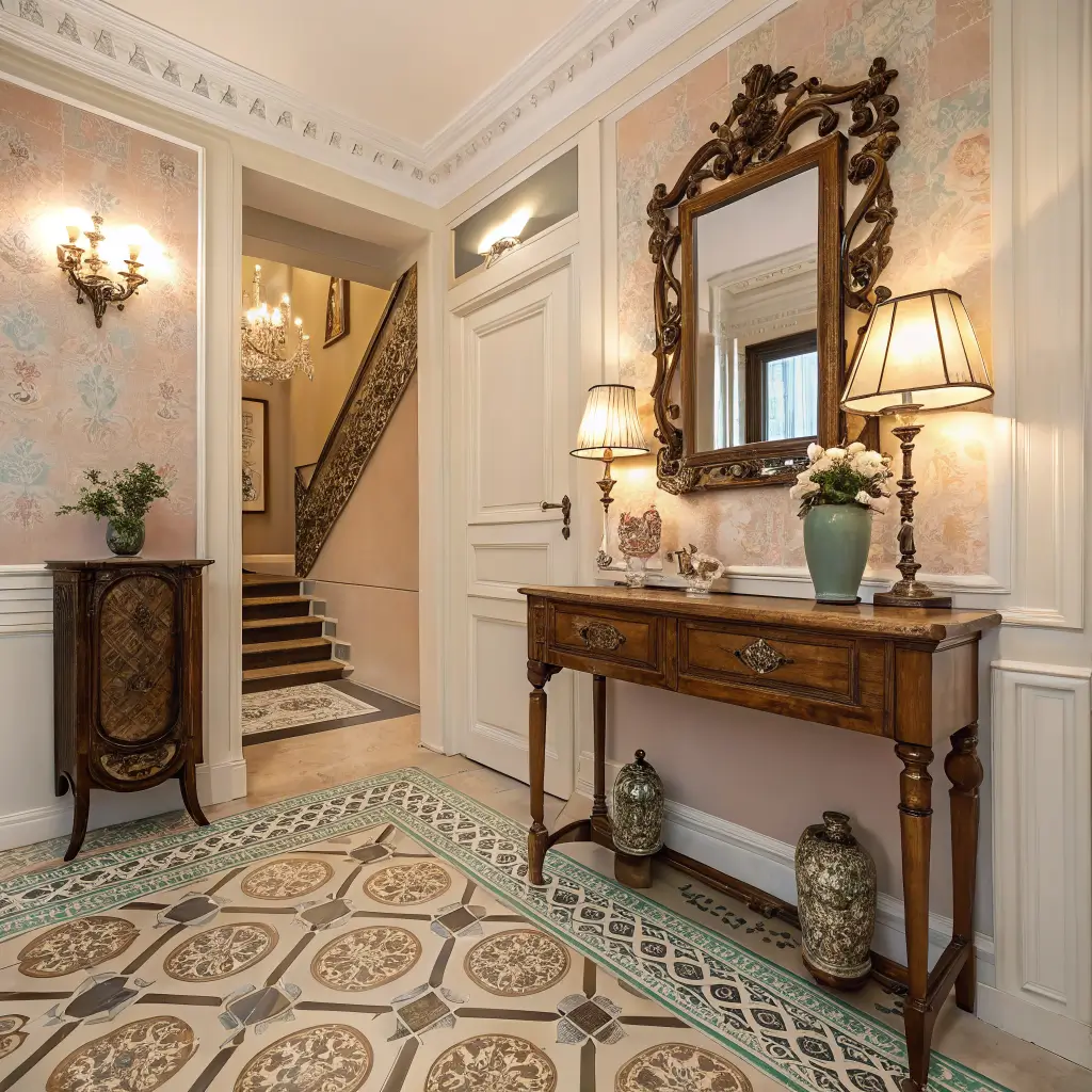 - Antique or ornate-framed mirrors — perfect for vintage or luxury foyer entrances