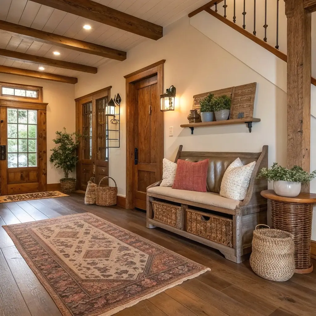 The beauty of rustic foyer area design is that slight imperfections add charm rather than detract from it. Worn edges, weathered surfaces, and honest materials signal quality and warmth in a way that perfectly polished décor sometimes can’t match.