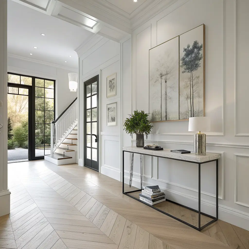 The trap most people fall into with minimalism is confusing it with “empty.” A true minimalist foyer entrance feels curated and intentional — not bare and unfinished. The difference lies in quality of selection and thoughtful placement, not just removal.