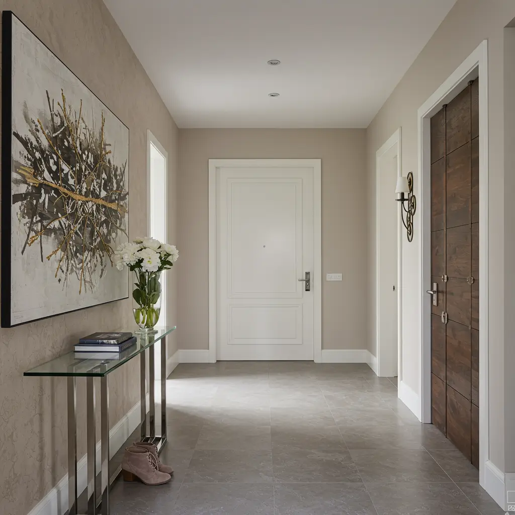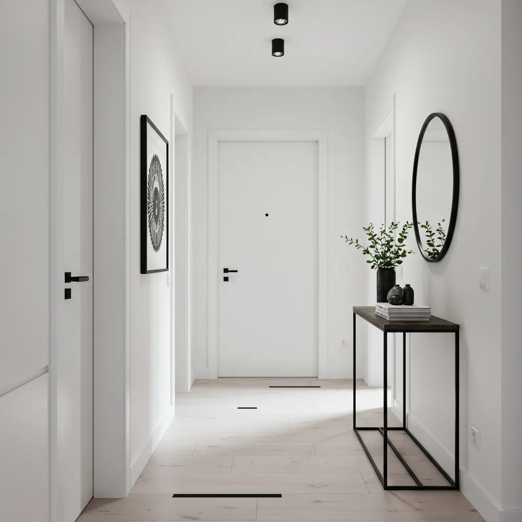 Key elements for a minimalist monochrome foyer: