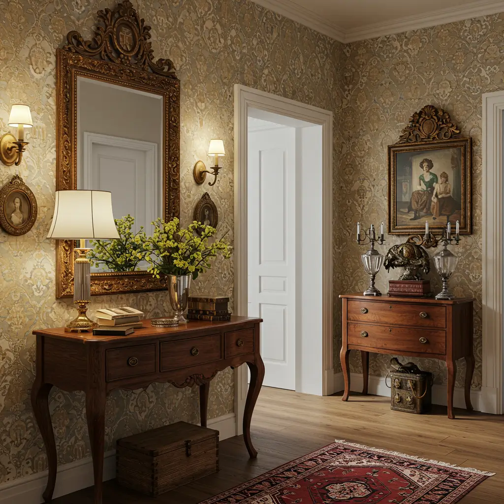 The sources for vintage foyer elements are broad: estate sales, auction houses, antique markets, charity shops, and online vintage platforms all yield exactly the kind of furniture, mirrors, lighting, and accessories this approach demands.