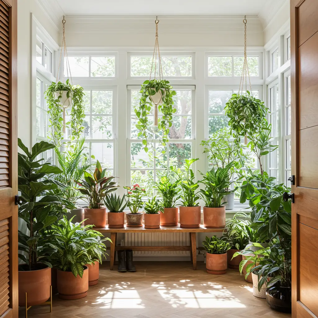 A foyer area filled with plants does something remarkable: it makes the transition from outside to inside feel like a positive experience rather than just a functional one. Plants bring oxygen, humidity, color, organic texture, and genuine vitality to a space. They respond to light and seasons, they grow and change, and they make a foyer feel alive in a way that no object or artwork can replicate.