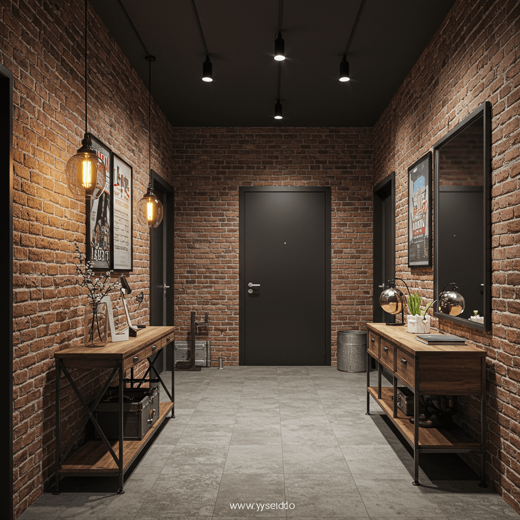 Industrial loft foyer area design strips everything back to its structural honesty — exposed brick, raw concrete, bare metal, and dark surfaces combine to create an entrance that feels bold, uncompromising, and genuinely cool. The industrial foyer doesn’t hide what it’s made of. It celebrates material quality, scale, and the particular beauty of things that were built to last.