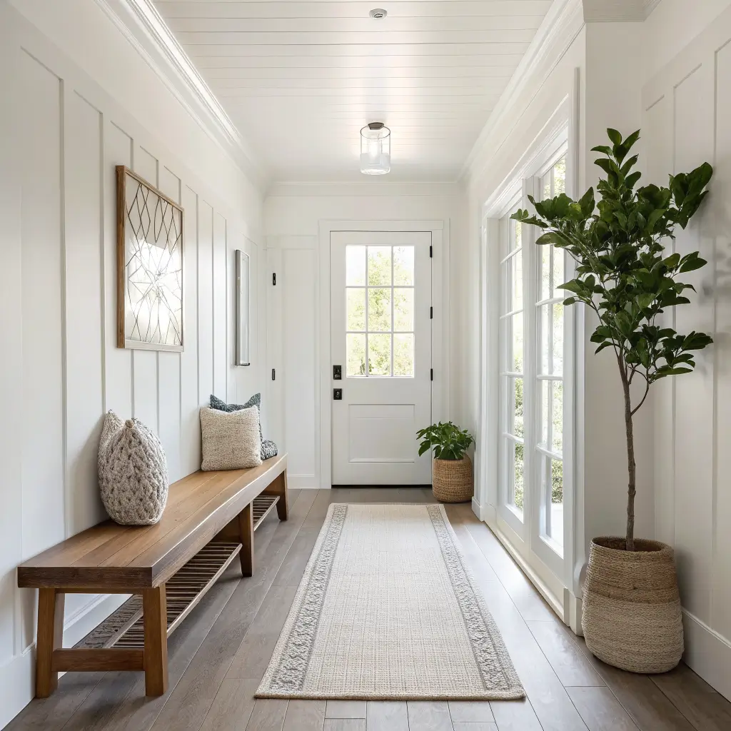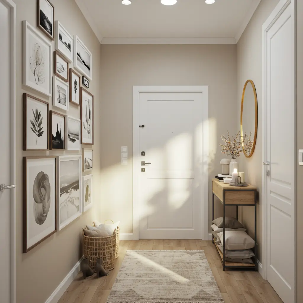 Think a slim console table in white or light wood, a single piece of abstract art, and a sleek coat hook. That’s it. Done. The beauty of minimalism is that it doesn’t feel sparse — it feels deliberate and calm.
