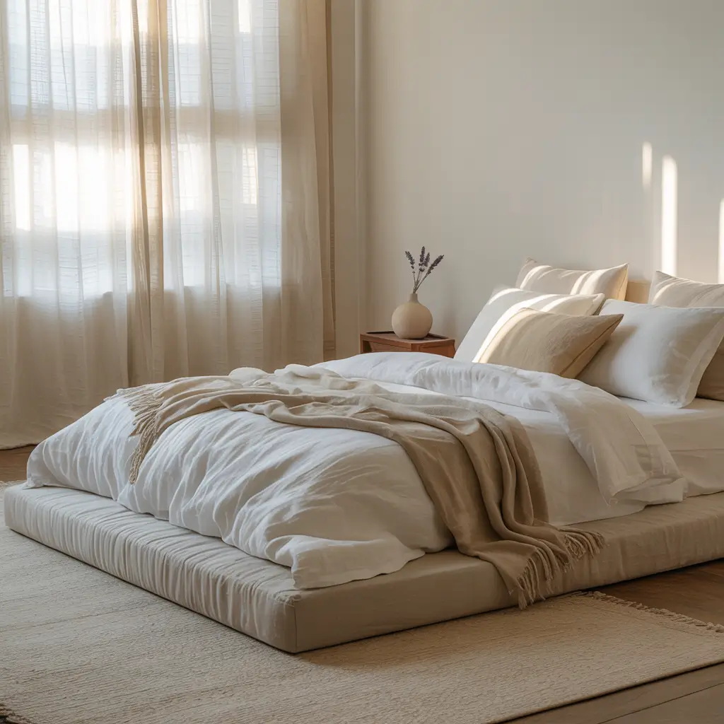 Start with your window treatments—sheer curtains or simple white shutters let light flood in while maintaining privacy. The color palette stays pale and interesting: whites, creams, and the palest grays or blues. But here’s the trick—layer different whites to create depth. Pure white walls, ivory bedding, and cream furniture prevent that flat, hospital feeling.