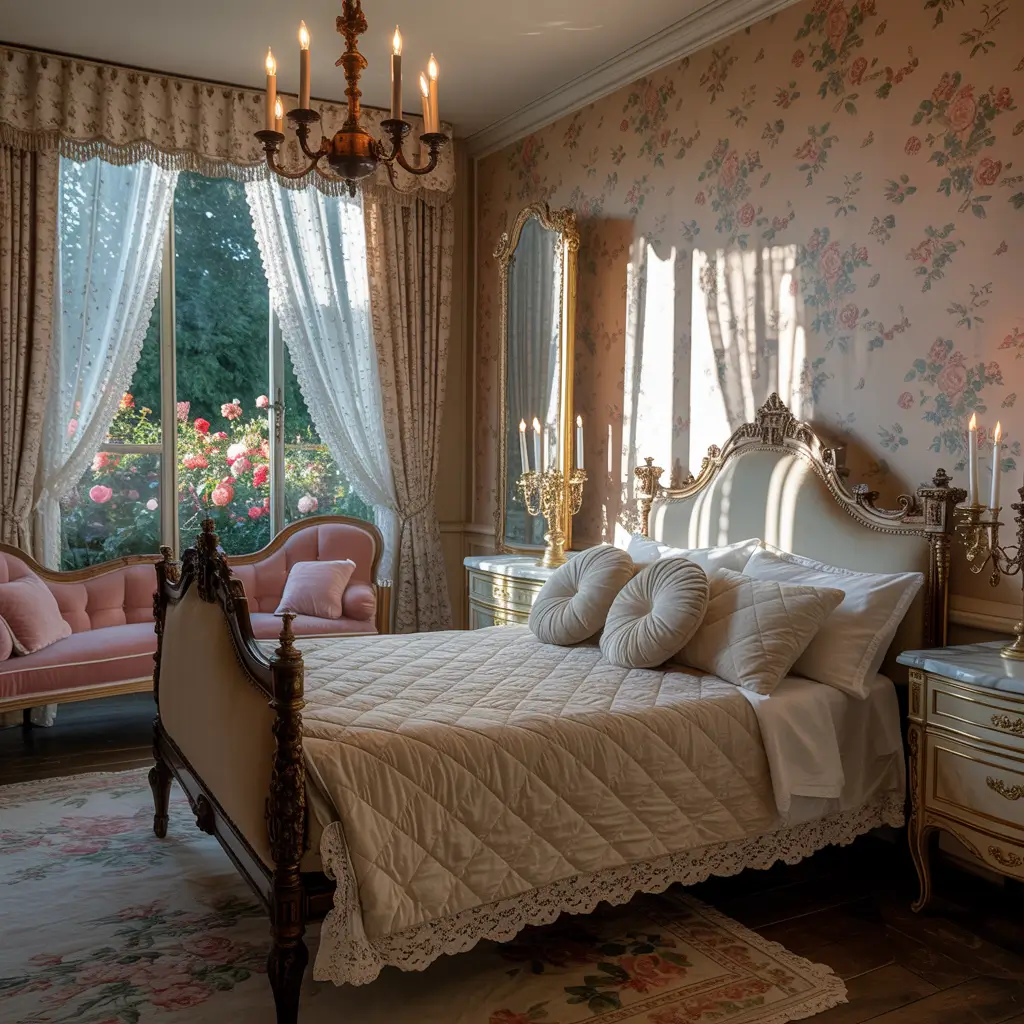 Chandeliers become essential here—the more crystals, the better. Add fresh peonies or roses (fake ones work if you’re plant-challenged like me), and scatter some vintage perfume bottles on your dresser. It’s about creating a space that feels like a romantic escape, even on a random Tuesday.