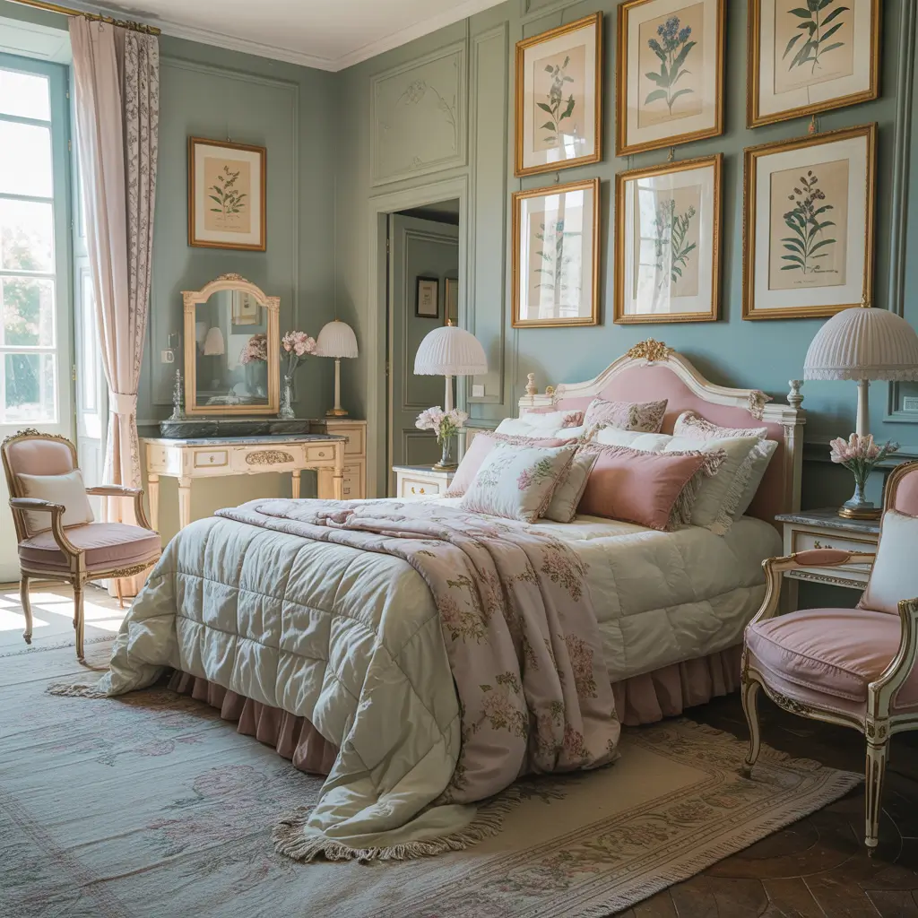 Pastels and French design go together like croissants and coffee. This aesthetic creates rooms that feel like sleeping inside a macaron—sweet, delicate, and utterly delightful.