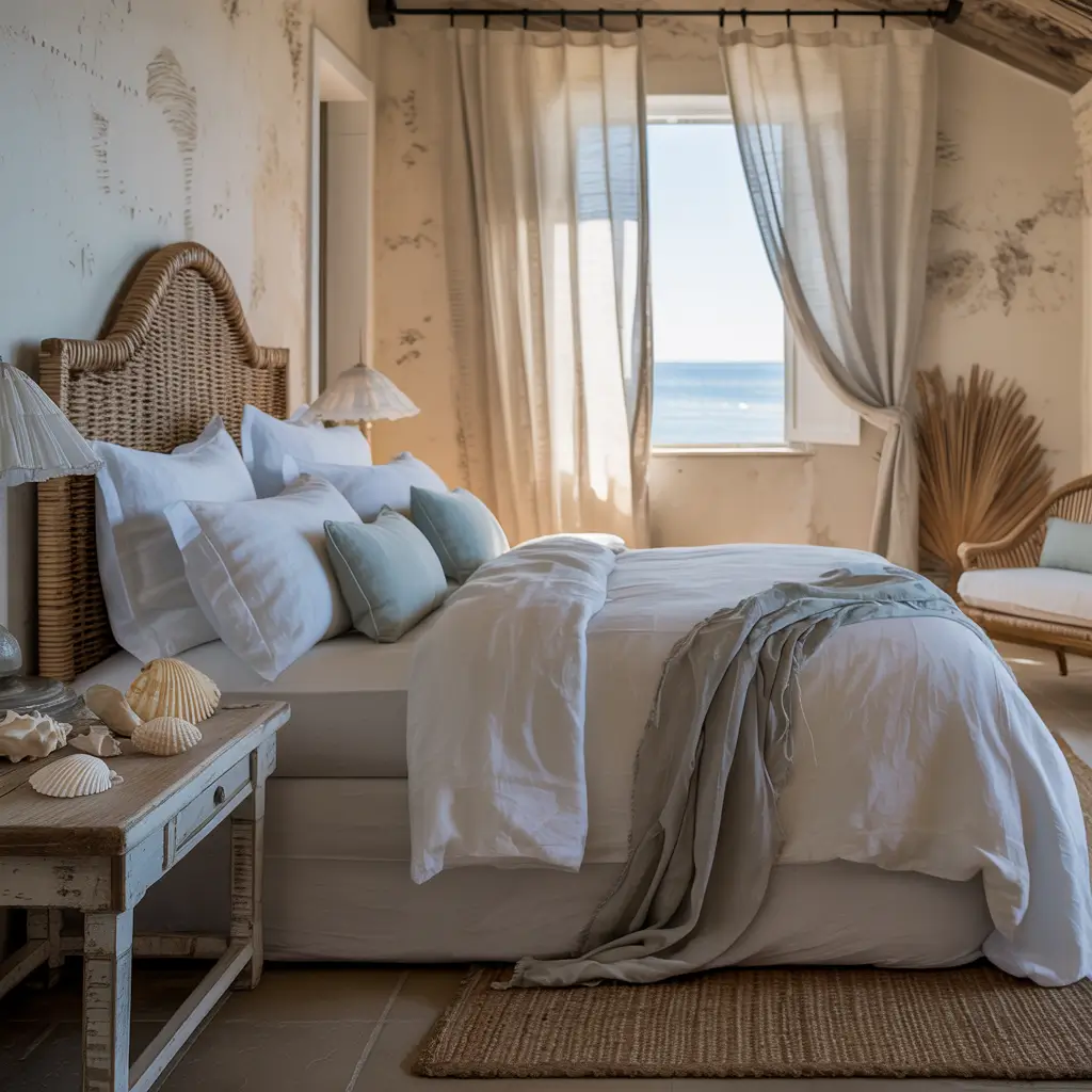 French coastal style—or as I like to call it, Riviera chic—brings Mediterranean vibes to your bedroom. Imagine waking up feeling like you’re in a villa in Nice, even if you’re actually in Nebraska.