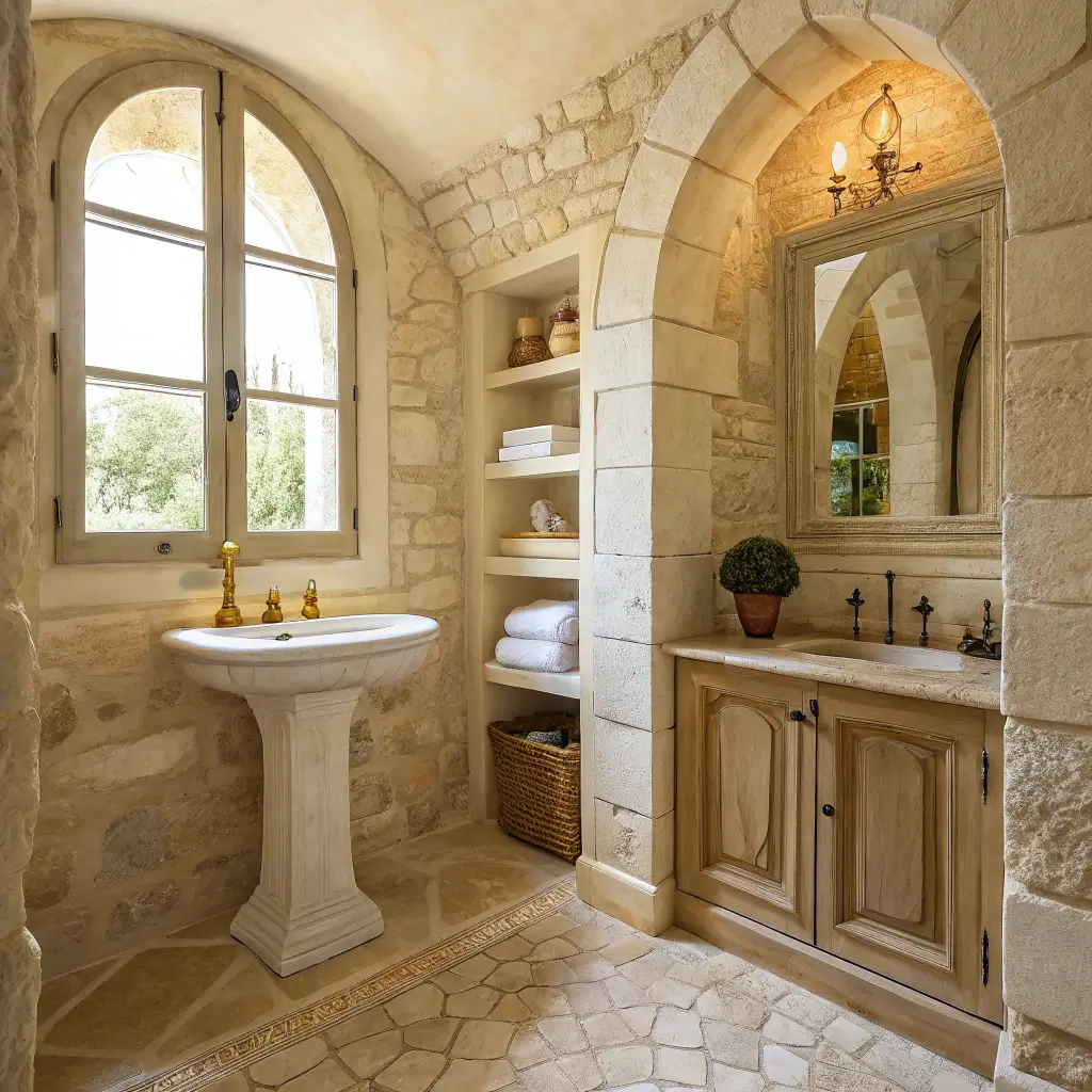 Let me tell you about my absolute favorite French cottage bathroom element—limestone. There’s something magical about how this natural stone transforms a space. I discovered this during a trip to Lyon, where literally every charming café bathroom had these gorgeous limestone floors that felt cool under your feet even in summer.