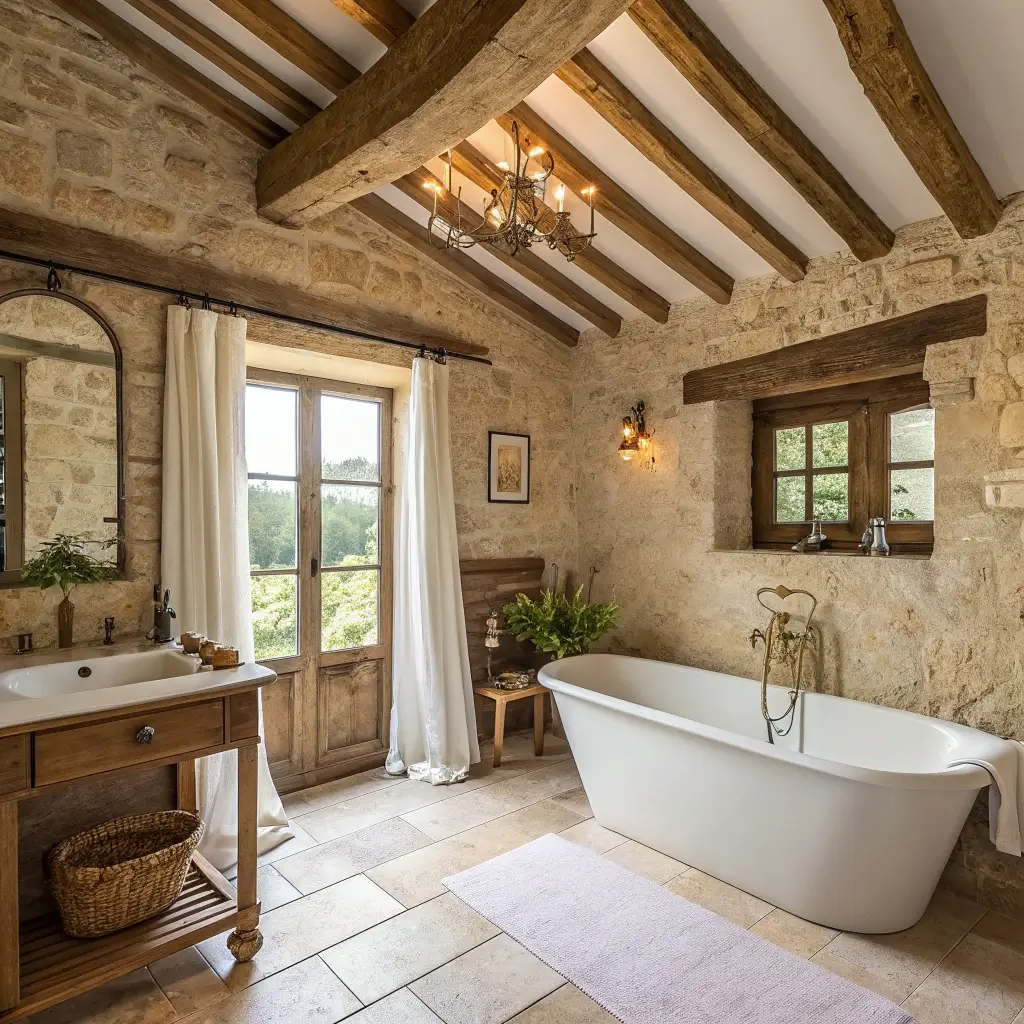 4. Rustic French Beam Ceiling Bath