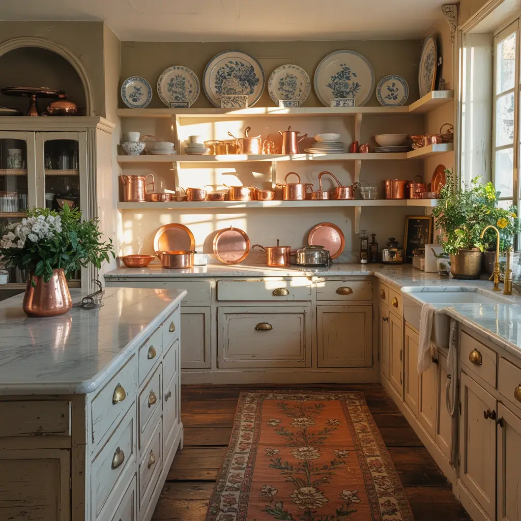 I replaced my upper cabinets with reclaimed wood shelves last spring, and honestly, it changed everything. The key to nailing this look? Mix functional pieces with purely decorative ones. Display your everyday dishes alongside vintage milk glass, antique scales, or that collection of ironstone pitchers you picked up at estate sales.
