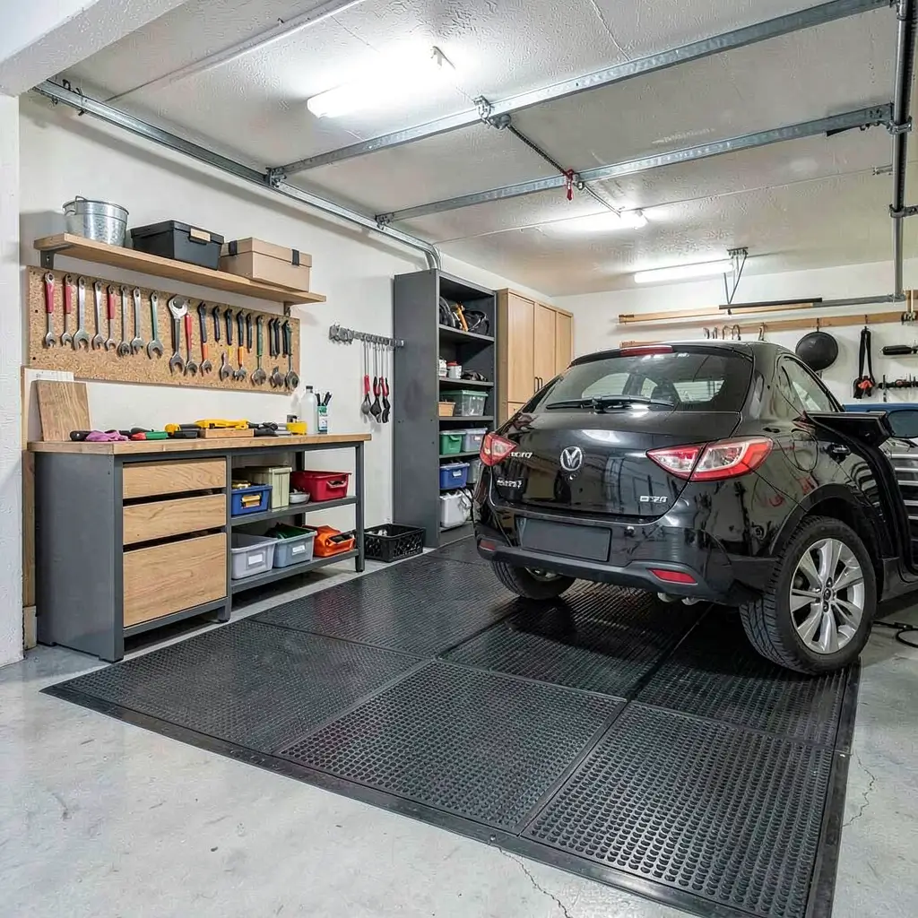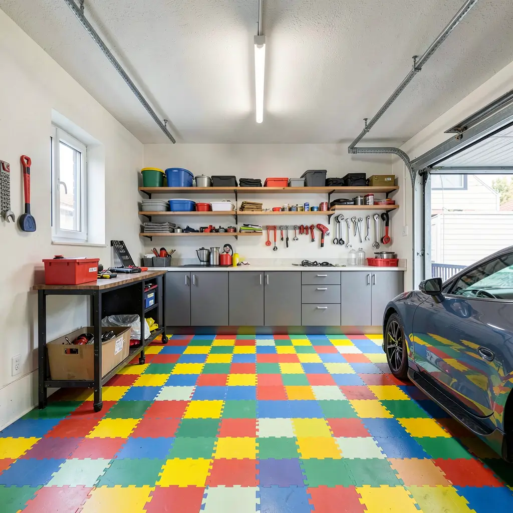 Interlocking tiles offer a unique organizational advantage: color zoning. You can use different colored tiles to visually define separate areas in your garage.