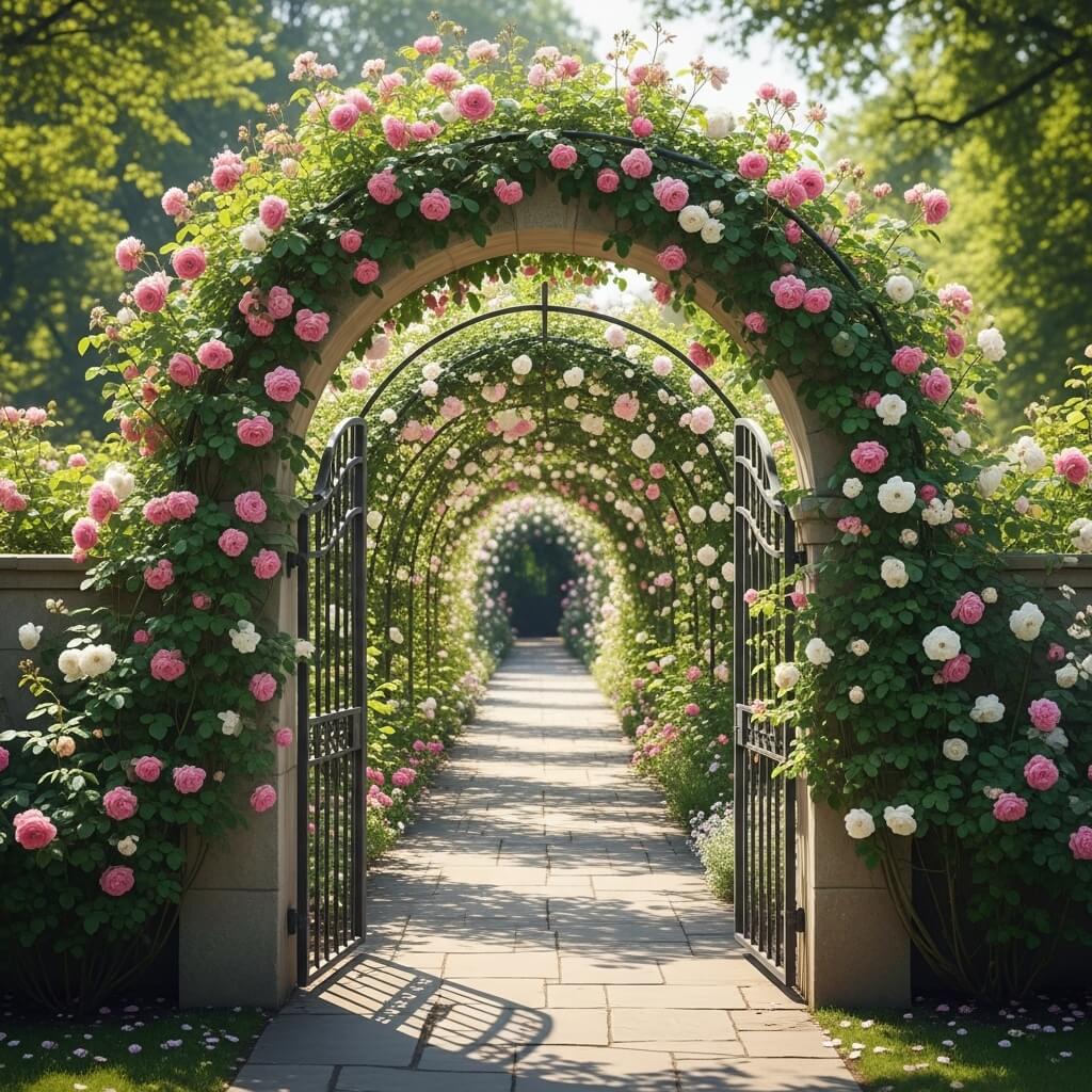 Traditional stone or brick archways are the gold standard, but they require serious construction skills and budgets. If you’re going this route, invest in proper foundations and consider hiring professionals. Done right, these become permanent landscape features that outlast everything around them.