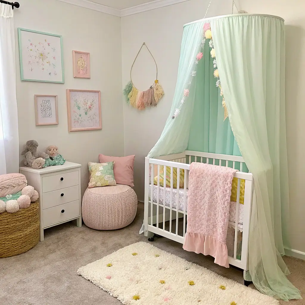 FYI, pastel nurseries are perfect for indecisive decorators. Can’t choose between colors? Use them all! The soft palette keeps everything cohesive even when you’re mixing multiple shades.
