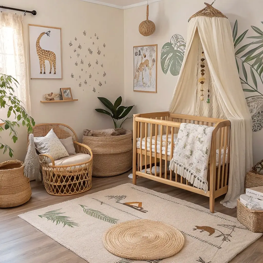 I recently helped design a jungle nursery using only green, gold, and white. No animals at all – just gorgeous botanical prints, real plants (mounted safely high), and natural textures. Everyone who sees it is amazed it’s a “jungle” theme without being overwhelming.