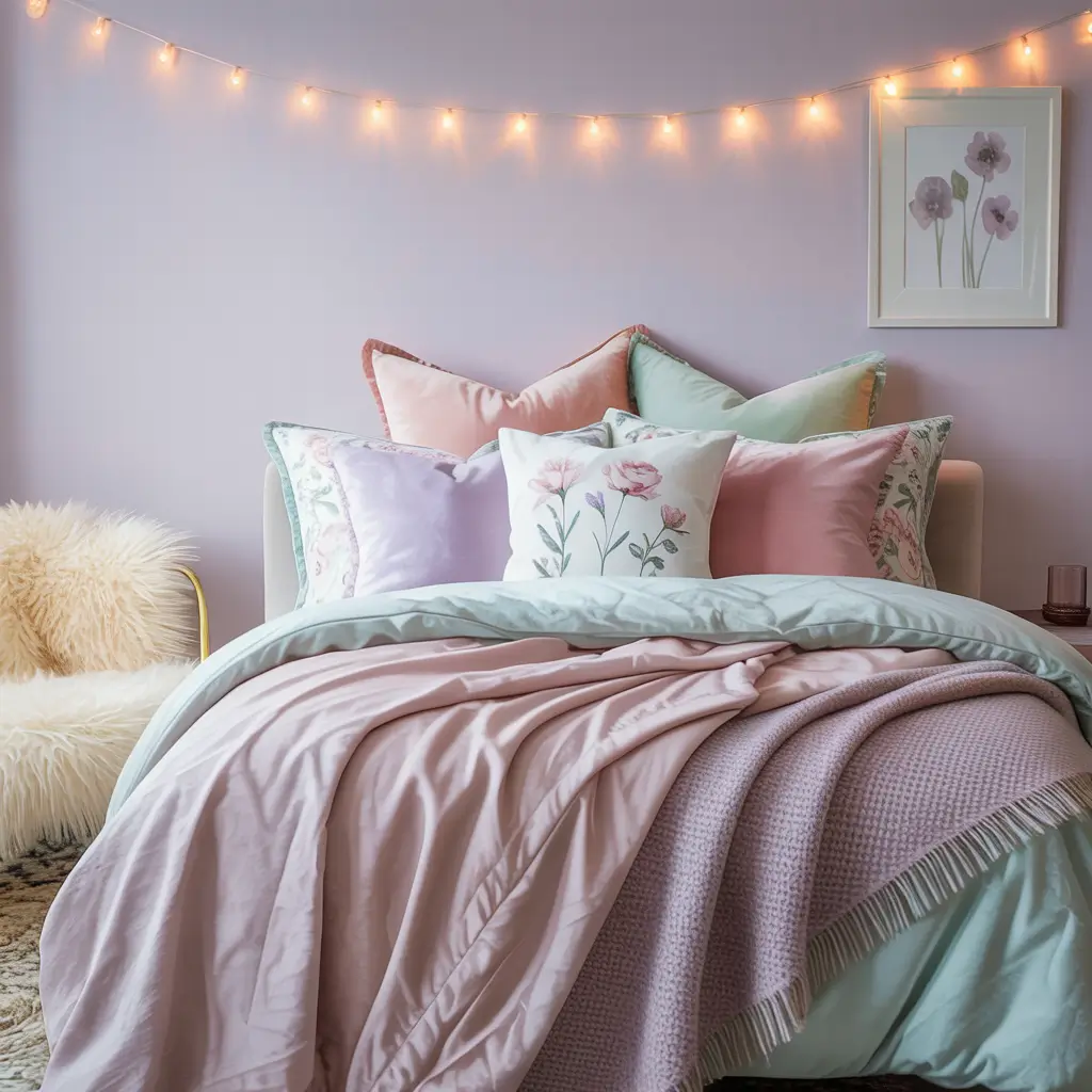Want to level up? Combine your fairy lights with pastel elements like mint green throw pillows, lavender blankets, or baby blue wall art. The contrast between the warm lights and cool pastels creates this incredible visual balance that just works.