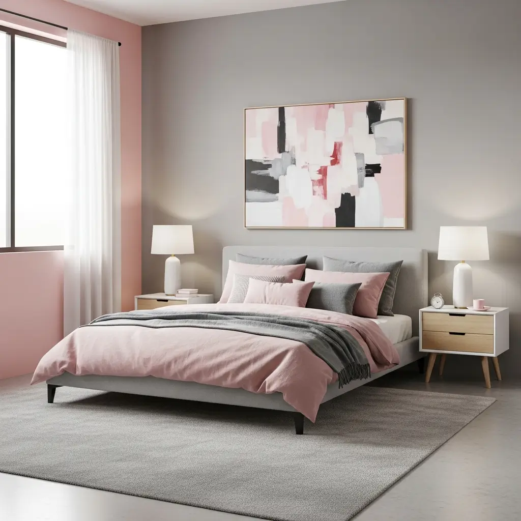 If you crave contemporary style but want to avoid the coldness that grey sometimes brings, a soft pink and grey modern bedroom is your answer. This pairing is incredibly chic, balancing warm femininity with cool sophistication. It’s a match made in design heaven, trust me.