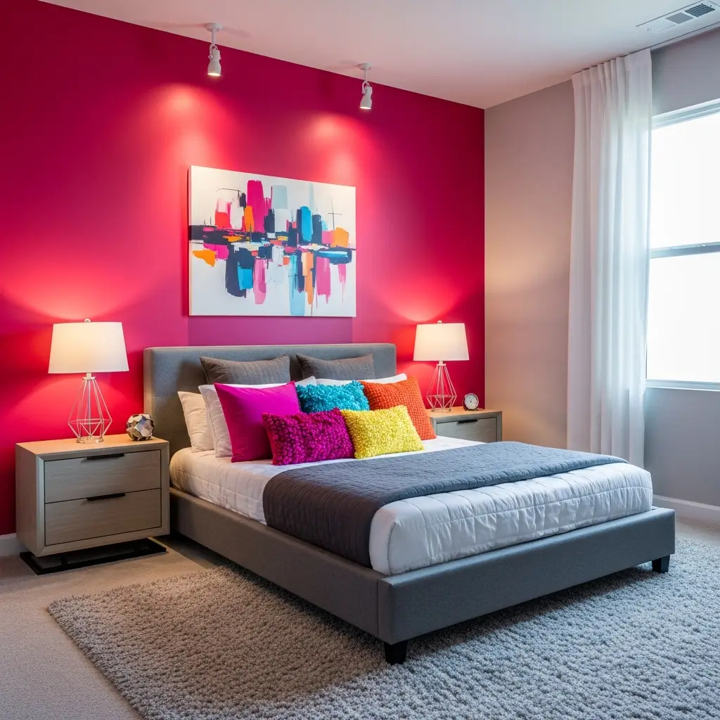 Vibrant Hot Pink Accent Bedroom