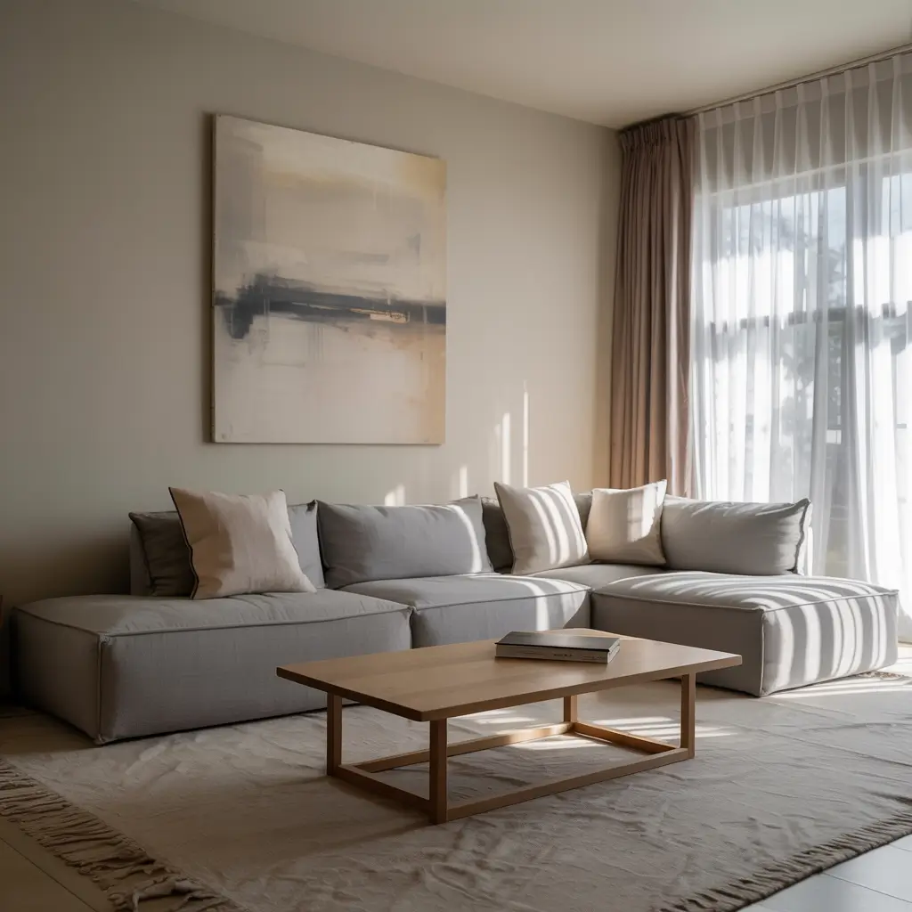 • Art: One oversized, impactful piece of abstract art above the couch is better than ten small ones.