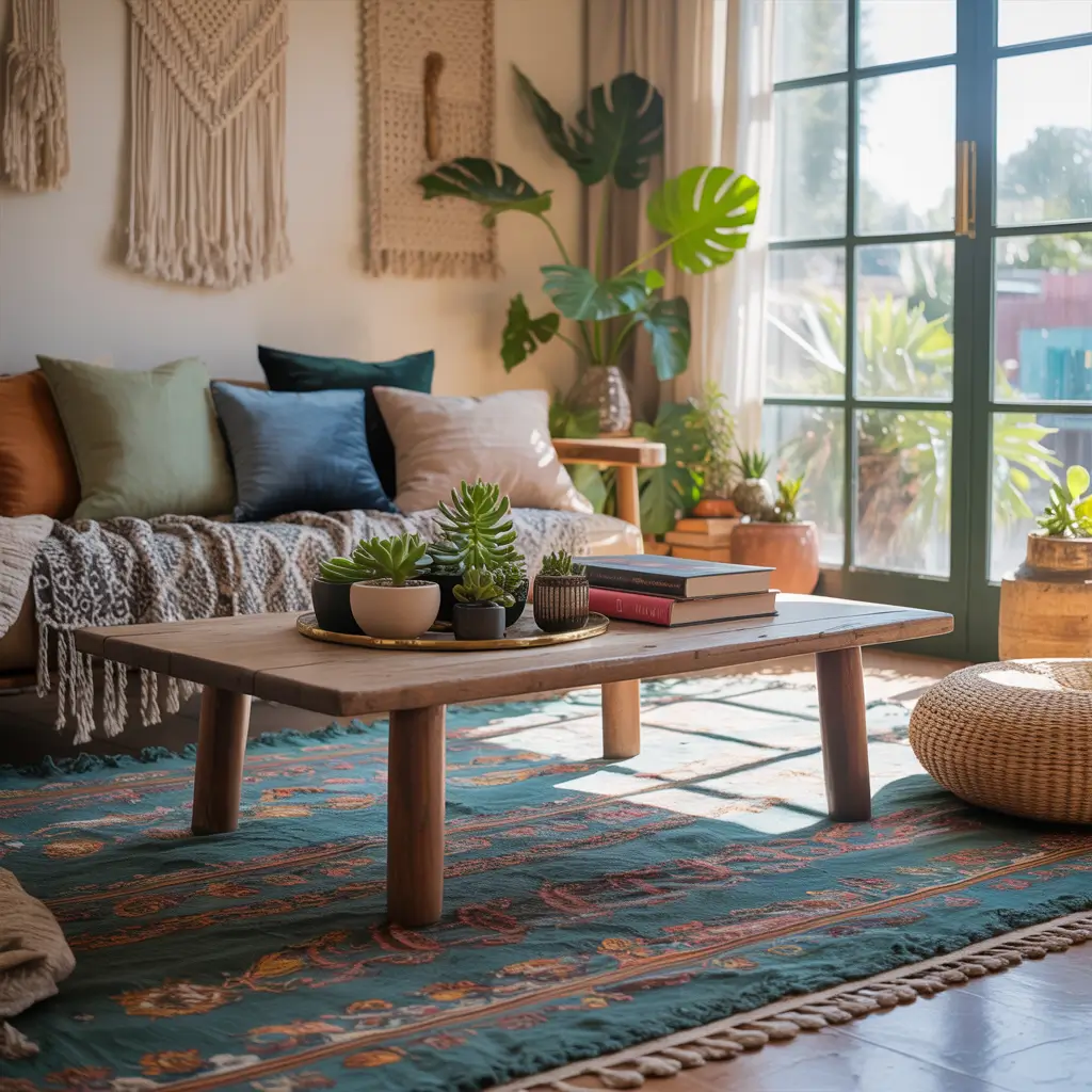 The mix of textures in green and blue creates that signature boho richness without feeling overwhelming.
