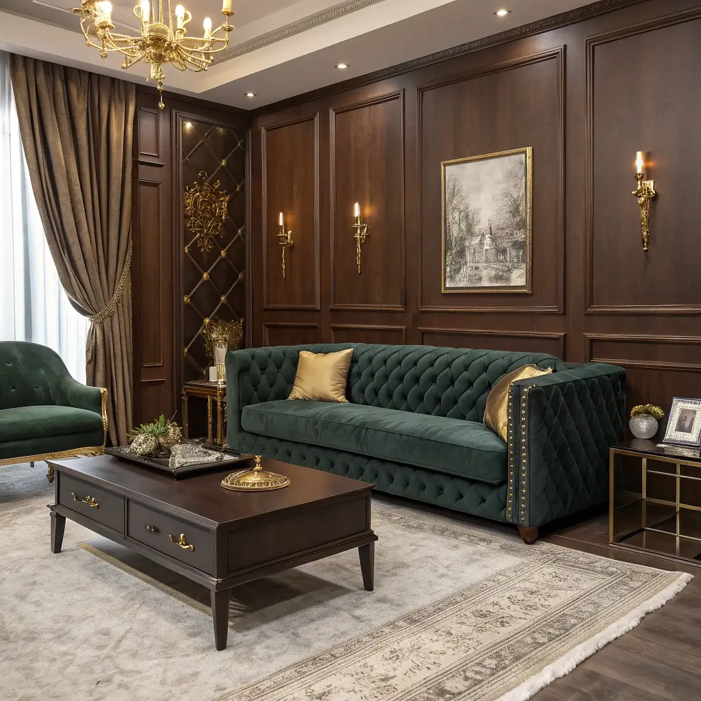 6. Dark Green and Brown Luxurious Lounge Ideas