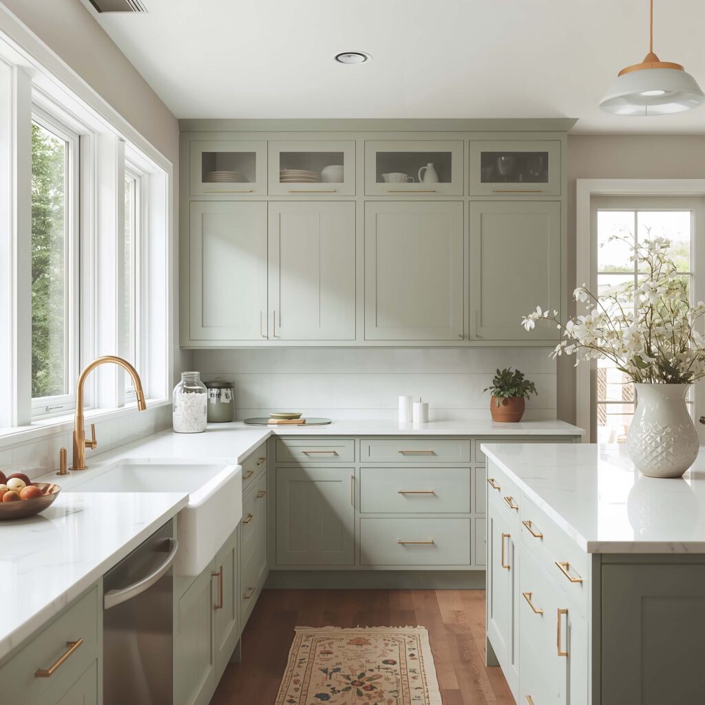 Sage Green Cabinets with White Countertops