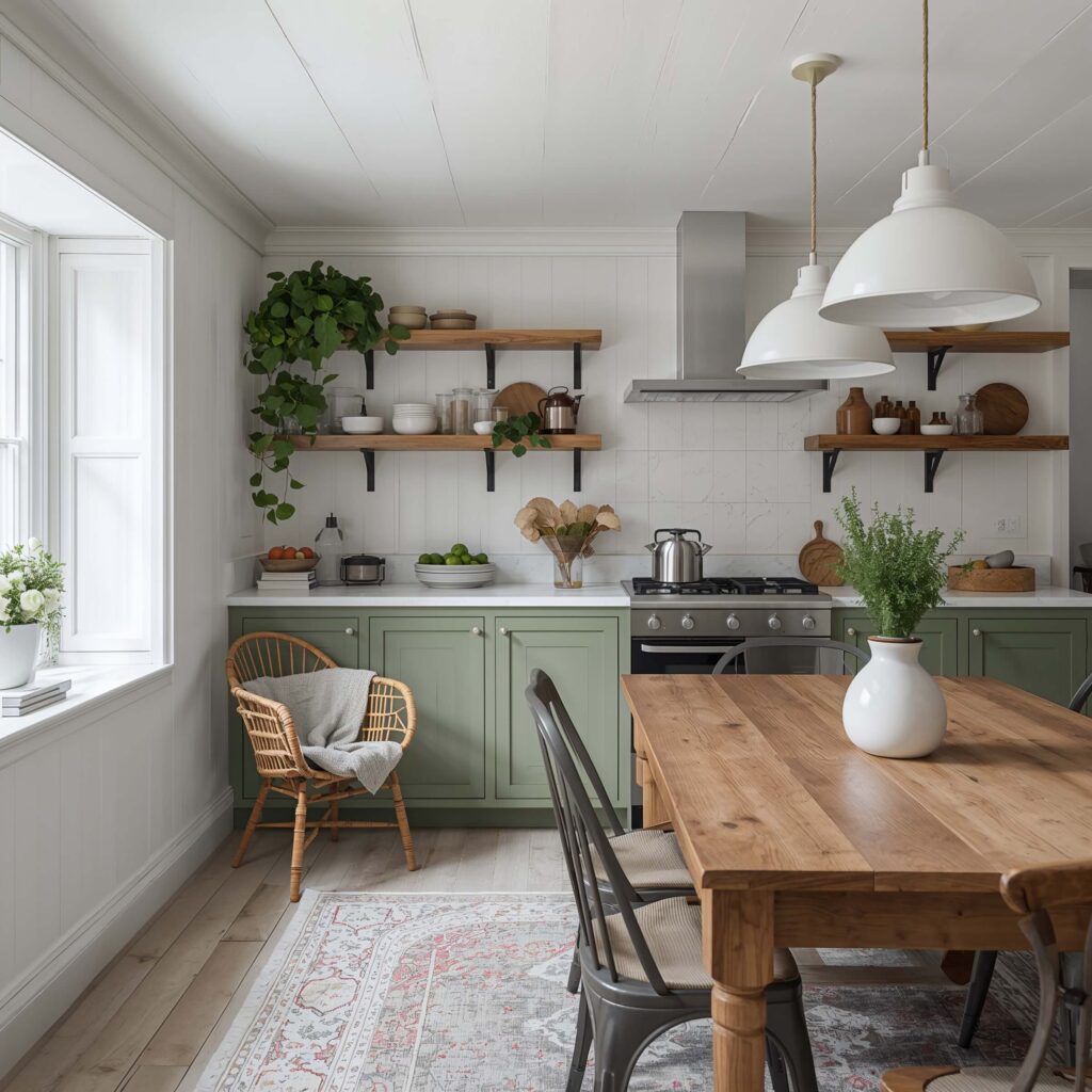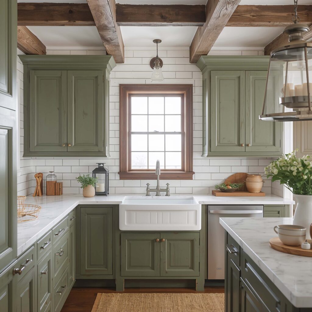 Farmhouse Green and White Kitchen Style
