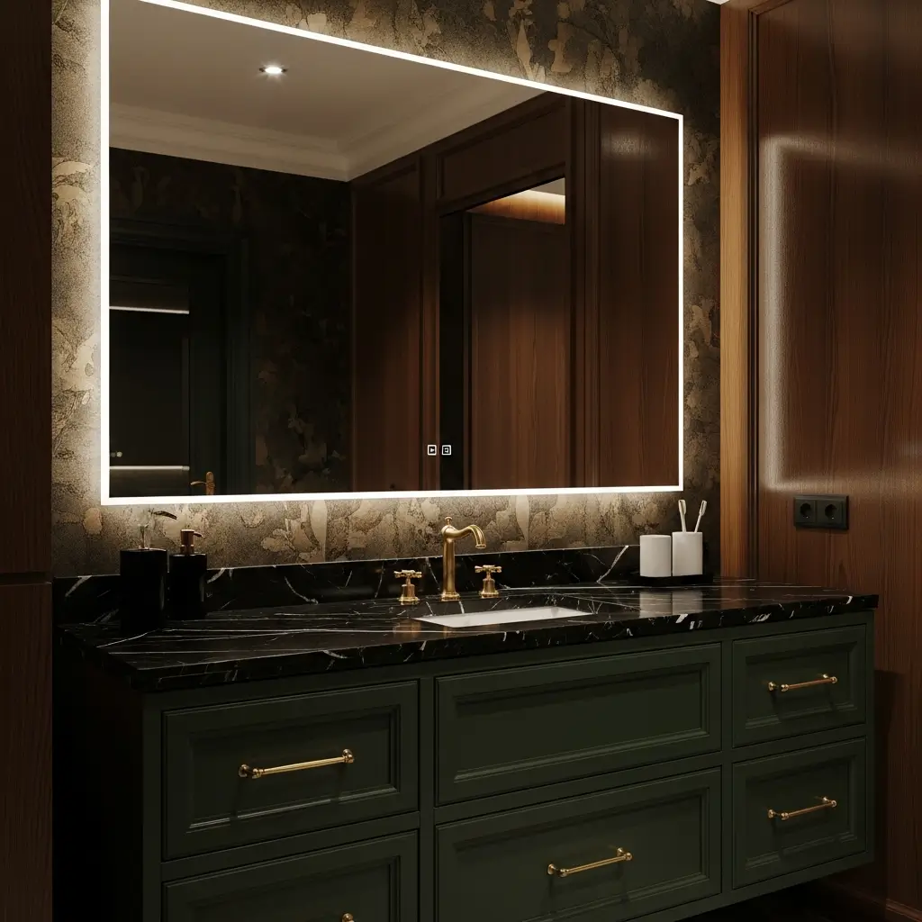 Modern emerald vanities work best with clean lines and minimal ornamentation. Think flat-panel doors, sleek hardware, and geometric shapes. The color itself provides all the drama you need. Pair it with brass or gold fixtures, and you’ve got instant glamour.