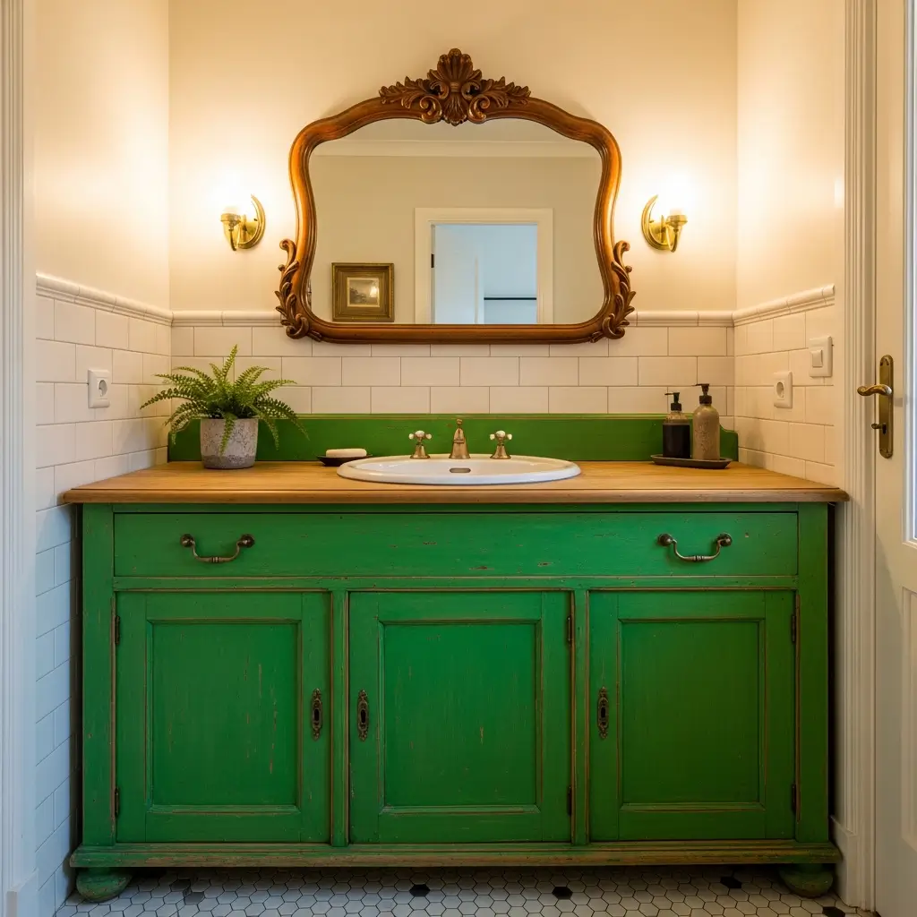 Taking a dated or vintage vanity and painting it green? That’s not just renovation – that’s transformation magic. The combination of vintage character and fresh color creates something genuinely unique.